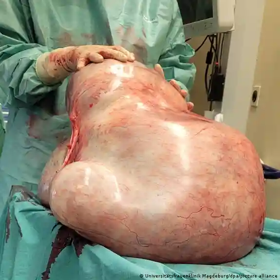 جرمنی کی مشہور ماگ ڈیبرگ یونیورسٹی میں قائم خواتین کے امراض سے متعلق کلینک کے ڈاکٹروں نے ایک نوجوان خاتون مریضہ کی بیضہ دانی کا آپریشن کر کے 32 کلوگرام وزنی ایک ٹیومر نکال لیا۔ طبی عملے کے مطابق یہ ٹیومر بے ضرر تھا تاہم طویل عرصے سے کسی کا دھیان اس کی طرف نہیں گیا تھا۔
