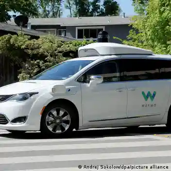 گوگل کی سسٹر کمپنی ویمو کی ایک سیلف ڈرائیونگ کار کی امریکہ میں ٹیسٹ ڈرائیونگ کے دوران لی گئی ایک تصویرتصویر: Andrej Sokolow/dpa/picture alliance