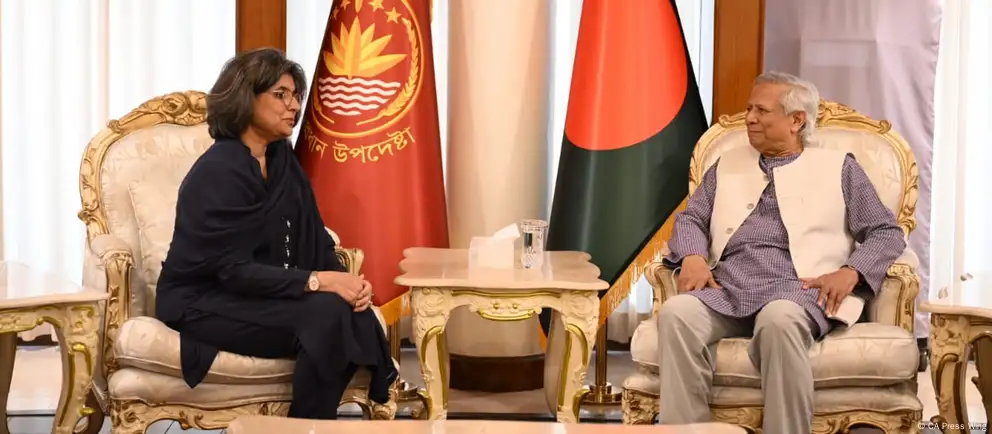 بنگلہ دیش کی سرکاری خبر رساں ایجنسی (بی ایس ایس) نے اطلاع دی ہے کہ ڈھاکہ انتظامیہ کے مشیر پروفیسر محمد یونس نے باہمی تعاون کو فروغ دینے اور تجارت اور کاروباری امکانات کو تلاش کرنے کے لیے پاکستان کے ساتھ تعلقات کو مضبوط بنانے پر زور دیا۔ انہوں نے آمنہ بلوچ سے کہا، ’’کچھ رکاوٹیں ہیں۔ ہمیں ان پر قابو پانے اور آگے بڑھنے کے طریقے تلاش کرنا ہوں گے۔‘‘