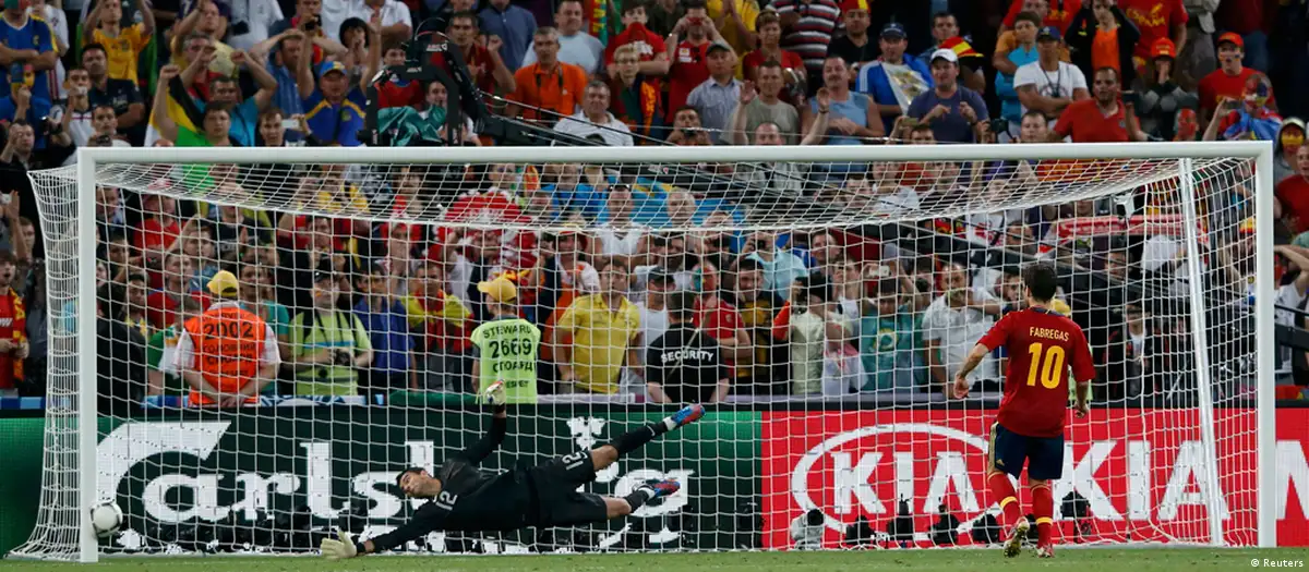 پرتگالی کھلاڑی ایلوس نے پنلٹی کِک ضائع کر دی جبکہ ہسپانوی کھلاڑی فابریگاس نے گول کر کے اسپین کو فائنل میں پہنچا دیا۔ پرتگالی اسٹار اور کپتان کرسٹیانو رونالڈو نے اس دوران پنلٹی کِک نہیں لگائی۔ رونالڈو نے کھیل کے 90 ویں منٹ میں گول کرنے کا ایک اچھا موقع ضائع کر دیا جبکہ کھیل کے اضافی وقت میں ہسپانوی کھلاڑی انیسٹا کی طرف سے ایک اچھی کوشش کو پرتگالی گول کیپر نے ناکام بنا دیا۔