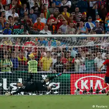 پنلٹی شوٹ آؤٹ ایک ڈرامائی انداز میں شروع ہوئی۔ پہلی پنلٹی کِک ہسپانوی کھلاڑی آلونسو نے لگائی، جو پرتگالی گول کیپر روئی پیٹریسیو نے روک لی۔ اسی طرح پرتگالی کھلاڑی روآؤ میٹینیو کی طرف سے لگائی گئی پہلی پنلٹی کِک ہسپانوی کپتان گول کیپر کاسیاس نے ناکام بنا دی۔