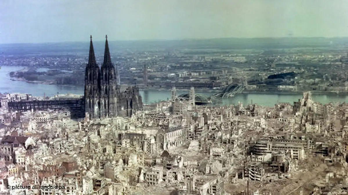 第二次世界大战持续了六年,战争结束时,德国许多城市化为废墟。比如,在科隆,95%的老城区被摧毁,科隆大教堂则奇迹般地几乎完好无损。而在德累斯顿,著名的圣母教堂只剩一片废墟。