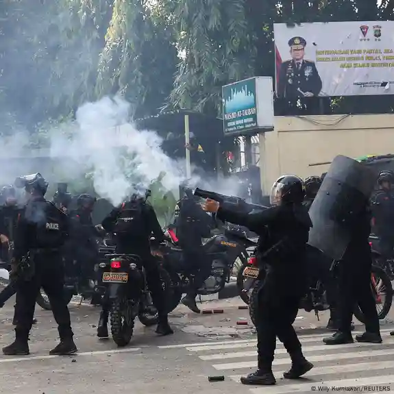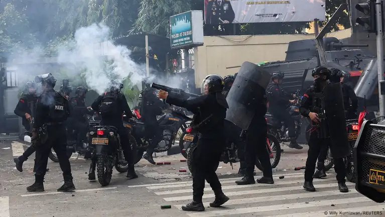 周五,总统普拉博沃承诺调查摩的司机死因。数小时后,印尼警方向数百名抗议者使用催泪弹,以驱散人群。