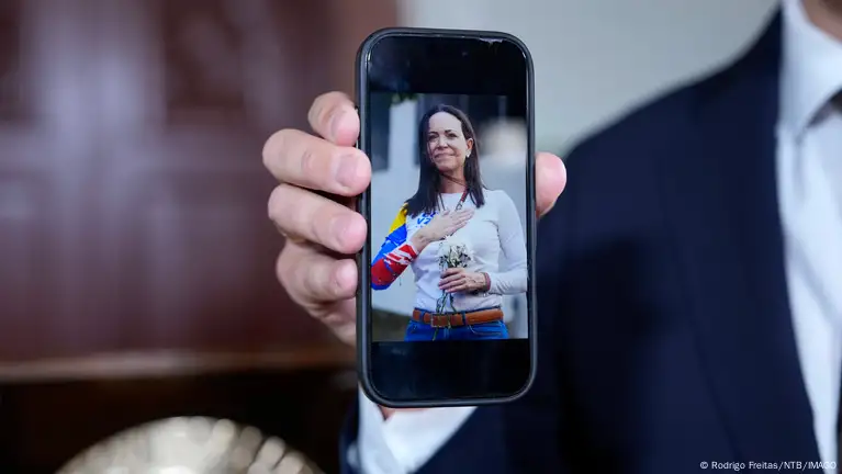奥斯陆诺奖委员会主席弗莱德内斯(Jorgen Watne Frydnes)表示,马查多“因她为委内瑞拉人民争取民主权利的不懈努力,以及她为实现和平、公正地从独裁到民主的过渡所做出的斗争”而获得该奖项。