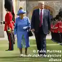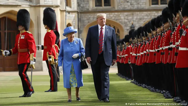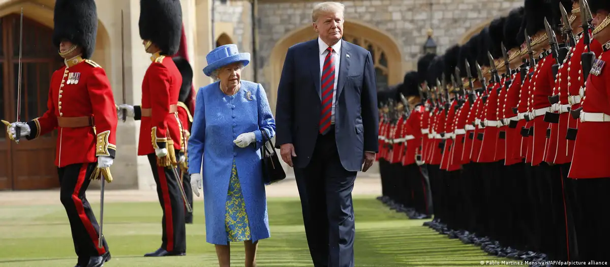 特朗普在2019年首次总统任期内曾对英国进行国事访问,受到伊丽莎白女王接待。