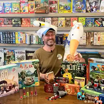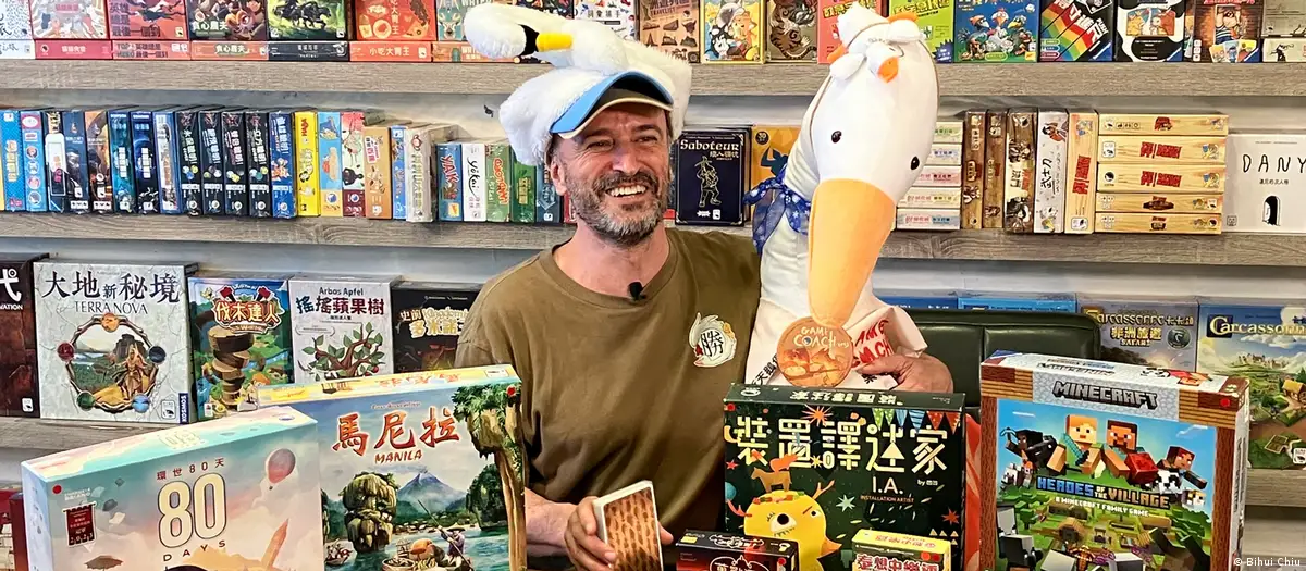 龚义诏是亚湾文具股份有限公司的设计总编辑,他也是让德国桌游在台湾普及的重要关键人物。他告诉DW,1997年当他还在读高中时,就接触到卡牌游戏《魔法风云会》(Magic: The Gathering),立刻被深深吸引,从此一头栽入桌游世界。当时,他甚至不知道这种游戏叫做“桌游”,因为那个年代“欧式桌游”在台湾尚未普及。虽然热爱《魔法风云会》,但对当年仍是学生的他来说,持续购买补充包和牌卡是一笔不小的花费,让他觉得有些吃力,也因此萌生自己设计桌游的念头。