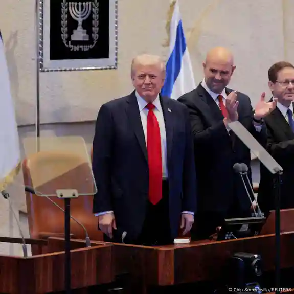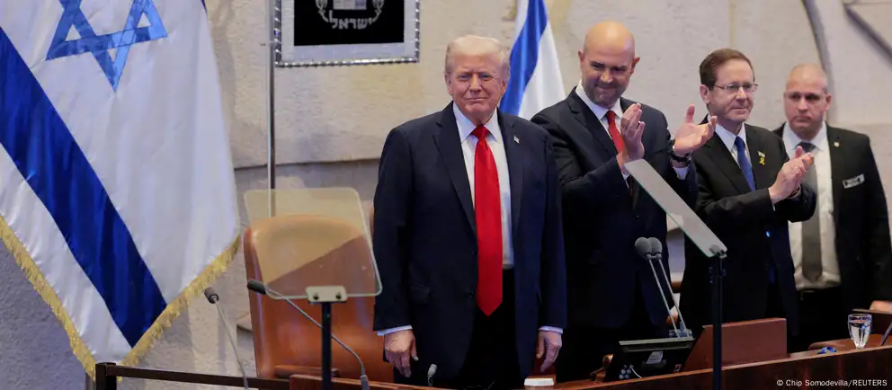 (德国之声中文网)美国总统特朗普週一(10月14日)在以色列国会(Knesset)受到“英雄式”欢迎,他在演说中称:“这不仅是一场战争的终结,更是恐怖与死亡时期的终结……对以色列人和巴勒斯坦人来说,‘长久的噩梦’终于结束了。”