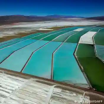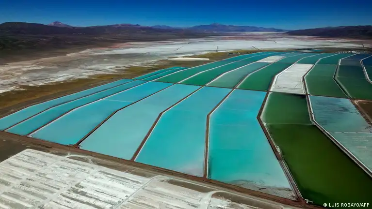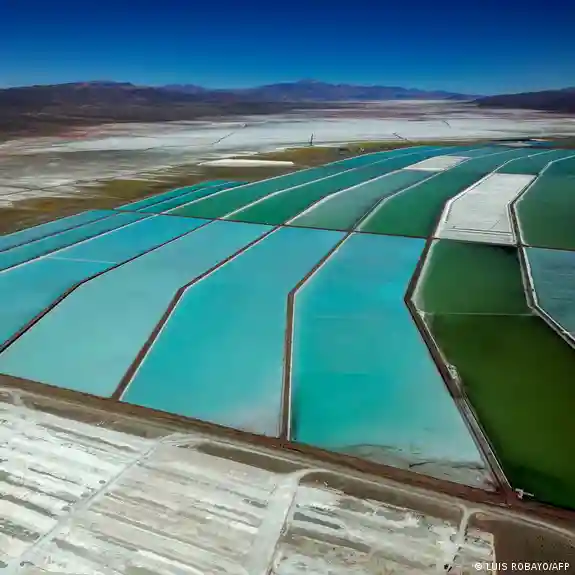 阿根廷已成为世界第四大锂生产国。图为从盐湖里提取锂的蒸发池。图像来源: LUIS ROBAYO/AFP